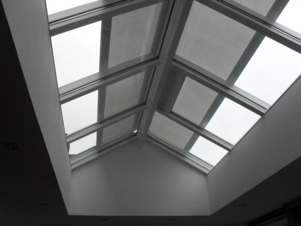 Elektrische buitenzonweringDe Luxlight lichtstraten zijn standaard voorzien van helder zonwerend glas. Dit glas vertraagd de warmteopbouw bij een hete zomerdag maar voorkomt dit niet. Ook bij hinderlijke zonnestralen die in uw gezicht schijnen kan het prettig zijn om het zonlicht te weren.Elektrische buitenzonweringDe buitenzonwering zorgt ervoor dat de zonnewarmte aan de buitenzijde wordt tegengehouden. Hierdoor is er nagenoeg geen invloed op de binnentemperatuur. Eigenschappen Luxlight zonnescreen: - Uitgevoerd met sunworkerdoek in de kleur grijs/wit (nr. M654). Dit doek is rot- en schimmelbestendig en laat nog voldoende licht door. - Bediend d.m.v. een afstandsbediening. - Door een speciale veerconstructie blijft het doek altijd op spanning. - Profielen zijn standaard voorzien van poedercoating in RAL 9010 bw.De zonwering is uitgevoerd met een elektrische aandrijving. De aansturing gebeurd met een zender. Hierdoor is het eenvoudig om in een latere fase een zonwering te plaatsen, mits in de bouwfase de elektradoorvoer geplaatst is. U hoeft geen rekening te houden met de plaats van de schakelaar.Het aansluiten van de zonwering op de huisinstallatie dient door een erkende installateur te gebeuren.