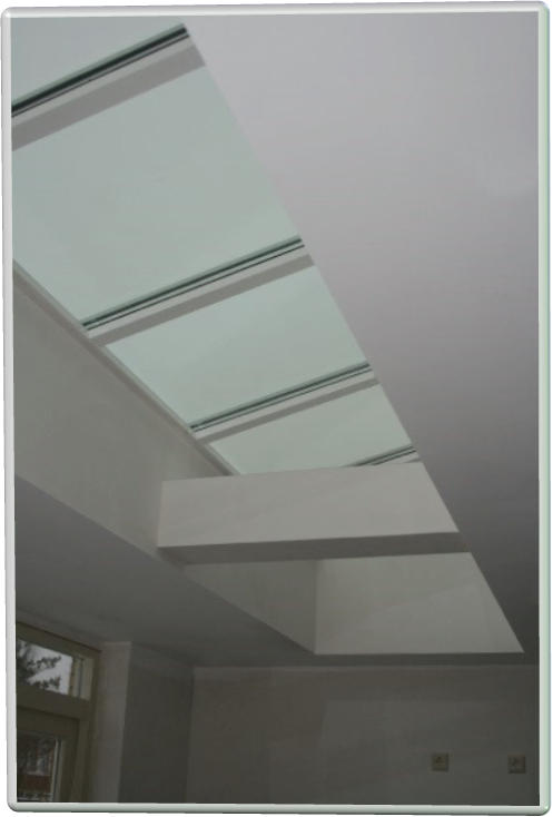 Elektrische buitenzonweringDe Luxlight lichtstraten zijn standaard voorzien van helder zonwerend glas. Dit glas vertraagd de warmteopbouw bij een hete zomerdag maar voorkomt dit niet. Ook bij hinderlijke zonnestralen die in uw gezicht schijnen kan het prettig zijn om het zonlicht te weren.Elektrische buitenzonweringDe buitenzonwering zorgt ervoor dat de zonnewarmte aan de buitenzijde wordt tegengehouden. Hierdoor is er nagenoeg geen invloed op de binnentemperatuur. Eigenschappen Luxlight zonnescreen: - Uitgevoerd met sunworkerdoek in de kleur grijs/wit (nr. M654). Dit doek is rot- en schimmelbestendig en laat nog voldoende licht door. - Bediend d.m.v. een afstandsbediening. - Door een speciale veerconstructie blijft het doek altijd op spanning. - Profielen zijn standaard voorzien van poedercoating in RAL 9010 bw.De zonwering is uitgevoerd met een elektrische aandrijving. De aansturing gebeurd met een zender. Hierdoor is het eenvoudig om in een latere fase een zonwering te plaatsen, mits in de bouwfase de elektradoorvoer geplaatst is. U hoeft geen rekening te houden met de plaats van de schakelaar.Het aansluiten van de zonwering op de huisinstallatie dient door een erkende installateur te gebeuren.
